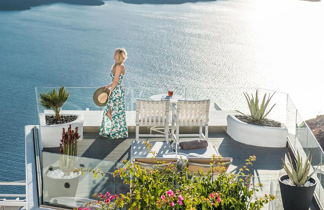 Localizado a uma distância de apenas 5 minutos a pé de Panagia Theoskepasti Chapel, o On The Rocks - Small Luxury Hotels Of The World Imerovigli de 4 estrelas possui o spa de serviço completo e o salão termal com pedicure, manicure e serviço de spa. Tem o porto marinho perto do hotel de estilo cicládico, e os hóspedes podem facilmente alcançar o Rochedo de Skaros, que está a aproximadamente 700 metros de distância.